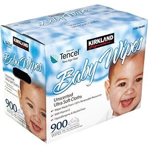 NEW! Kirkland Signature All Natural Fiber Baby Wipes - 900 ct Kirkland baby wipes are designed specifically for baby's soft skin. Friendly to the environment as well, the wipes are biodegradable. -Tencel natural fiber wipe made from 100% renewal resources -Exceptionally soft / Highly absorbent / Strong -With Vitamin E -Hypoallergenic & Alcohol Free -Unscented Contains 9 packages of 100 wipes each