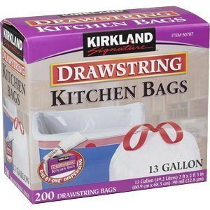Click here to read more details Kirkland Signature Drawstring Kitchen Trash Bags - 13 Gallon - 200 Count products Product Features