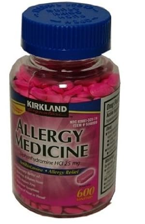Click here to read more details Diphenhydramine HCI 25 Mg - Kirkland Brand - Allergy Medicine and AntihistamineCompare to Active Ingredient of Benadryl® Allergy Generic - 600 Count products Product Features